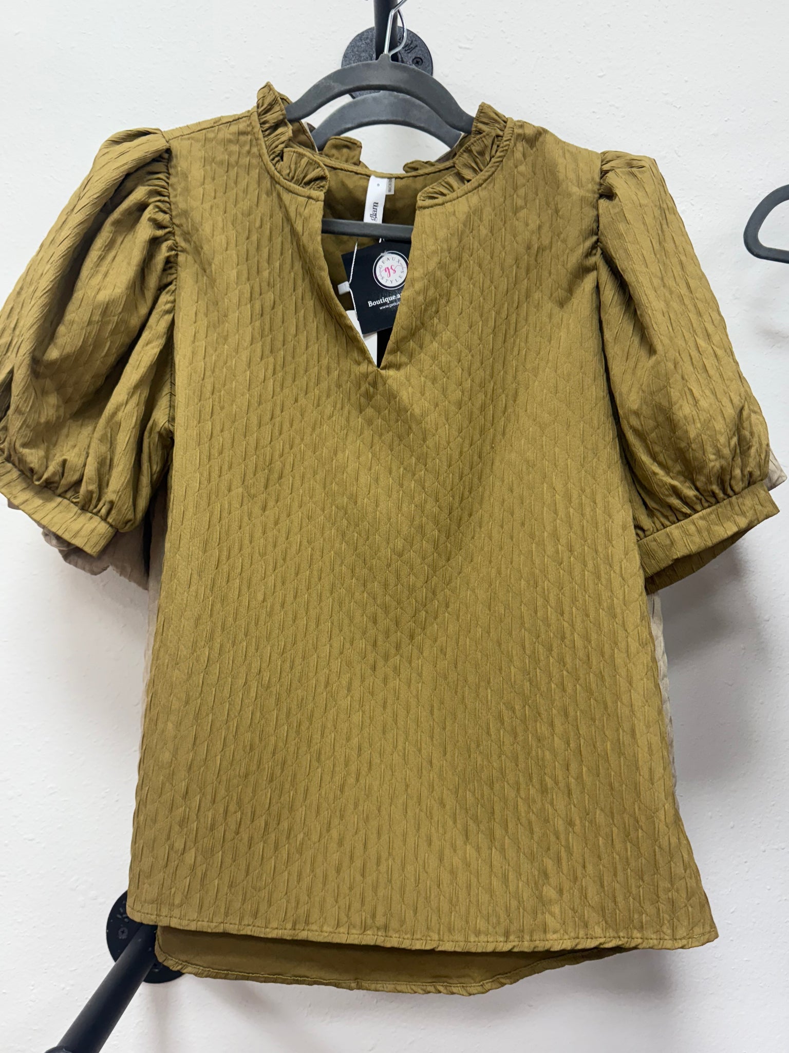 Introducing the Olive Ruffle V-neck Puff Sleeve, a stunning addition to your wardrobe. This stylish...