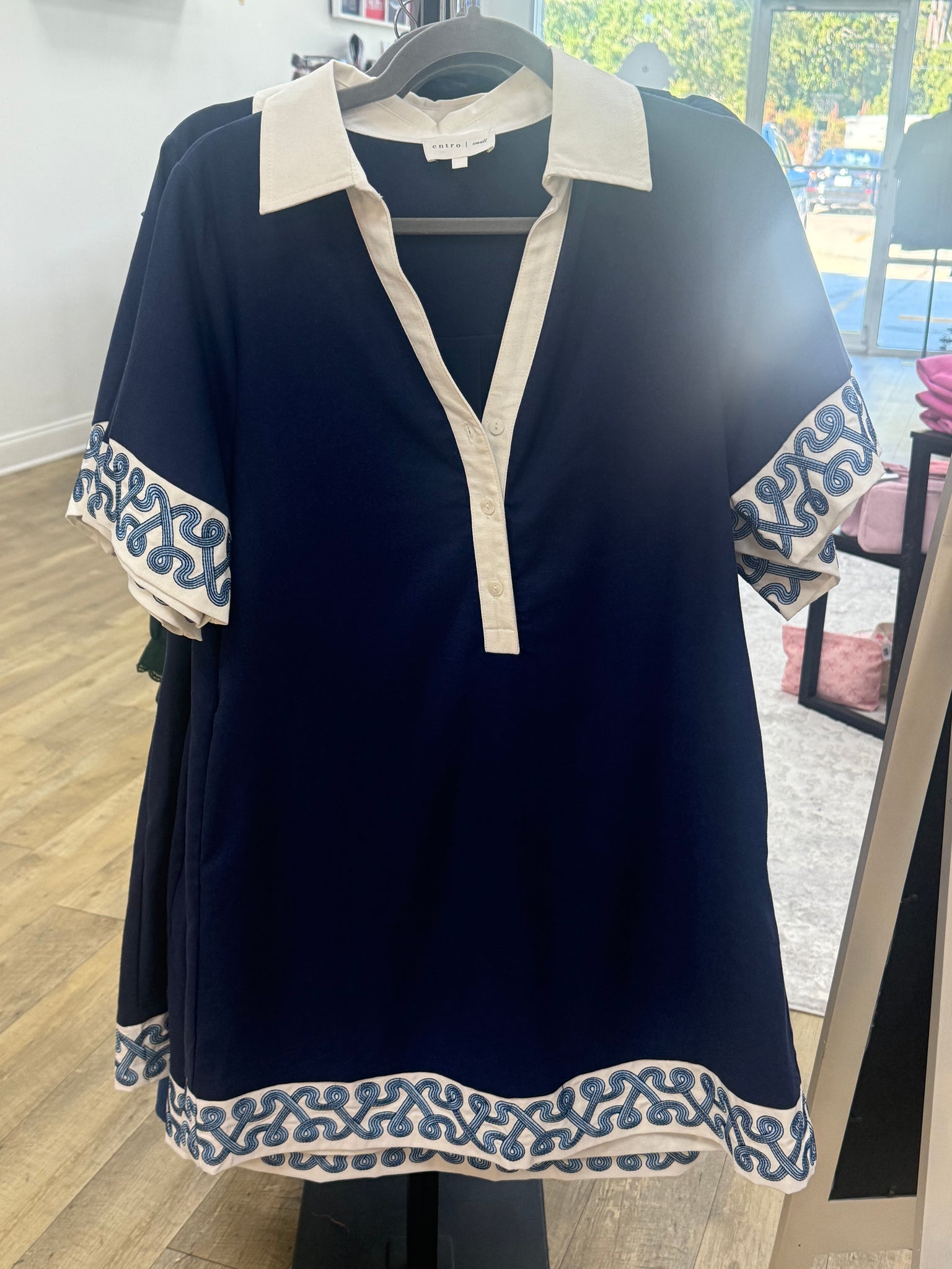 Introducing the Entro navy blue dress, a stunning addition to your wardrobe. This elegant dress...
